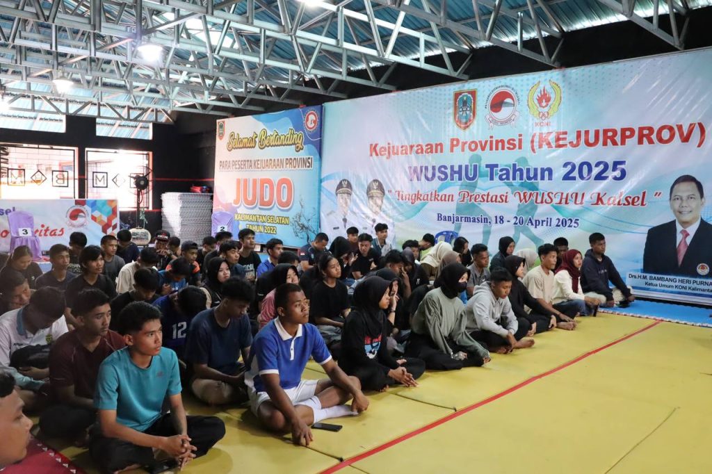 BANJARMASIN – Sebanyak 135 atlet wushu dari 8 kabupaten/kota mengikuti Kejuaraan Provinsi (KEJURPROV) Wushu Tahun 2025 yang diselenggarakan di Gedung Beladiri Pa Bambang Heri Purnama, Banjarmasin, Jumat (18/4/2025).