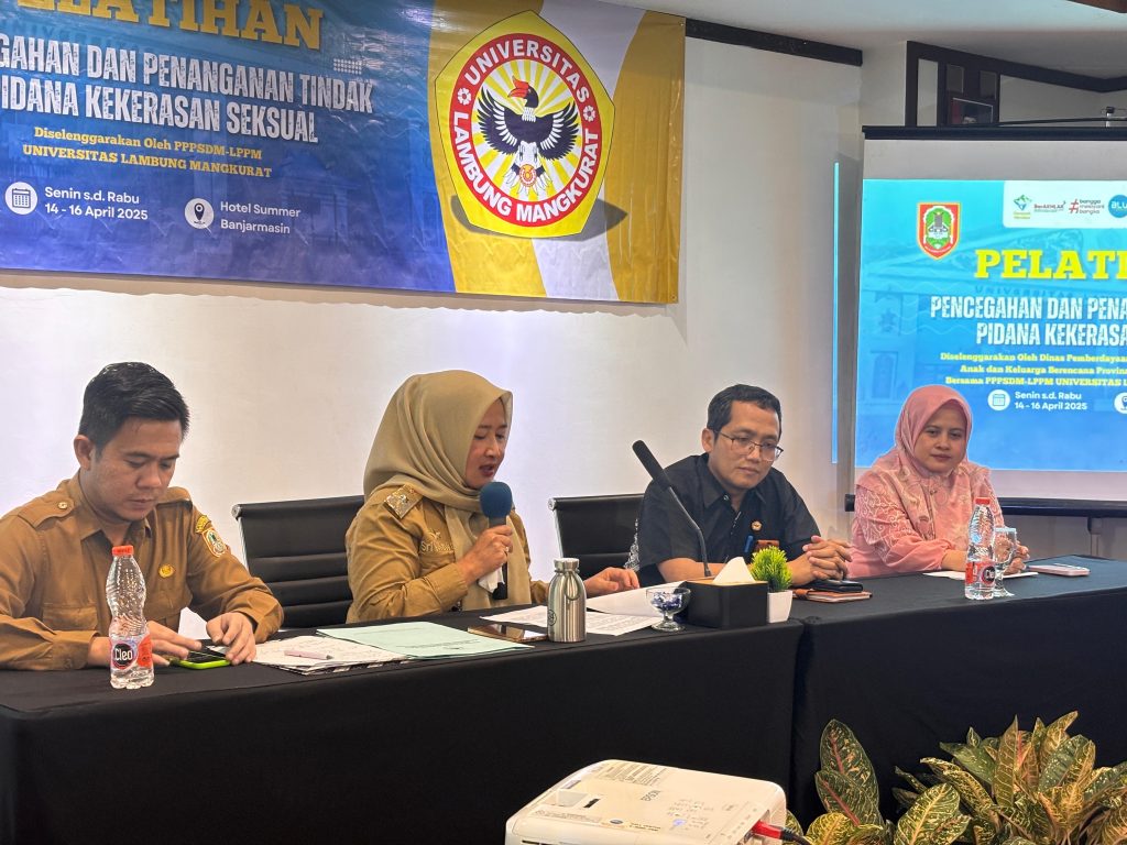 Dalam sambutannya, Kepala DPPPAKB Provinsi Kalimantan Selatan, Sri Mawarni, menekankan pentingnya pelatihan ini sebagai langkah awal membangun sistem penanganan yang adil, berpihak pada korban, dan mengedepankan sinergi antar lembaga.