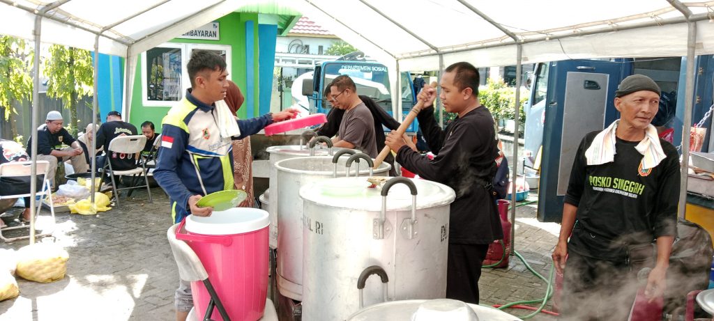 “Adapun menu yang disiapkan berupa nasi berlauk telur dan tahu bumbu kuning. Dapur umum ini melibatkan relawan Tagana, staf Dinas Sosial, dan pelopor perdamaian yang berpartisipasi secara sukarela,” ucap Achmadi.